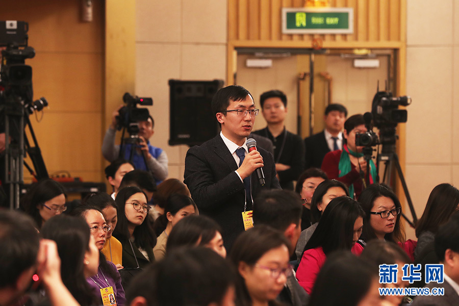 十三屆全國(guó)人大一次會(huì)議新聞中心3月17日(星期六)15時(shí)在梅地亞中心多功能廳舉行記者會(huì),邀請(qǐng)環(huán)保部部長(zhǎng)李干杰就“打好污染防治攻堅(jiān)戰(zhàn)”相關(guān)問題回答中外記者提問。圖為法制日?qǐng)?bào)記者提問。新華網(wǎng)/中國(guó)政府網(wǎng) 曲植 攝