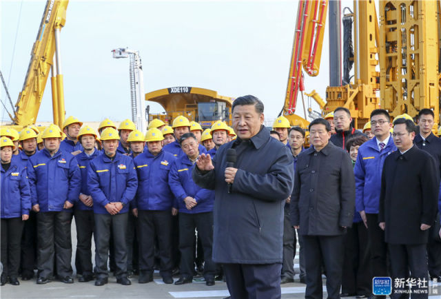 2017年12月12日,習(xí)近平在徐工集團(tuán)重型機(jī)械有限公司親切看望勞動(dòng)模范、技術(shù)能手等職工代表,鼓勵(lì)他們?cè)跒閷?shí)現(xiàn)中國(guó)夢(mèng)的奮斗中爭(zhēng)取人人出彩。新華社記者 謝環(huán)馳 攝