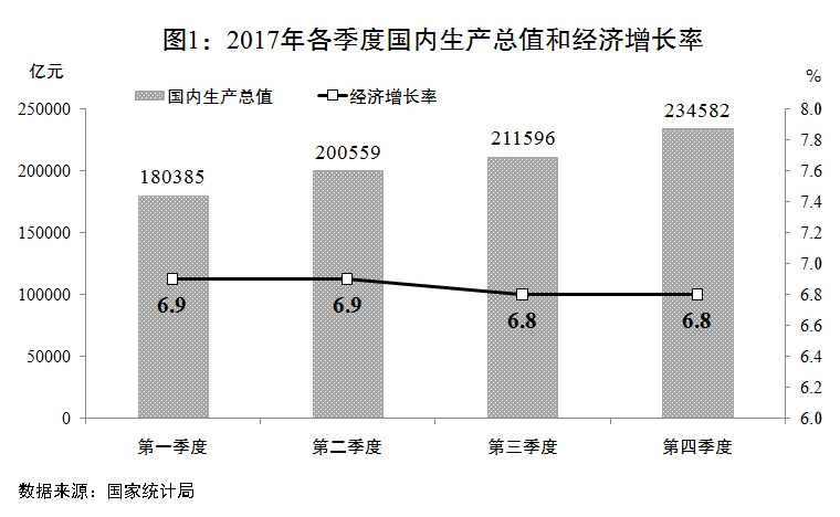 從2017年經(jīng)濟(jì)社會(huì)發(fā)展情況看,經(jīng)濟(jì)增長(zhǎng)、就業(yè)、價(jià)格總水平、國(guó)際收支平衡等主要指標(biāo)保持在合理區(qū)間,創(chuàng)新驅(qū)動(dòng)、民生保障等反映發(fā)展質(zhì)量和效益的指標(biāo)進(jìn)一步改善,總的完成情況是好的。