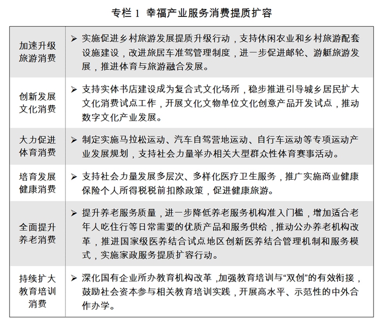 一是完善促進(jìn)消費(fèi)的體制機(jī)制。繼續(xù)推進(jìn)實(shí)施“十大擴(kuò)消費(fèi)行動(dòng)”,支持社會(huì)力量進(jìn)入醫(yī)療、養(yǎng)老、教育、文化、體育等領(lǐng)域,推動(dòng)互聯(lián)網(wǎng)與養(yǎng)老、醫(yī)療、家政、快遞等服務(wù)業(yè)融合發(fā)展。大力支持健康產(chǎn)業(yè)發(fā)展,建設(shè)優(yōu)質(zhì)養(yǎng)老服務(wù)供給體系。推進(jìn)家政服務(wù)提質(zhì)擴(kuò)容,推動(dòng)家政服務(wù)從業(yè)人員職業(yè)化建設(shè)。