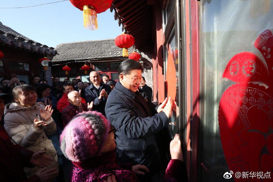 2月1日上午,習近平來到北京前門東區(qū),沿草廠四條胡同步行察看街巷風貌,走進居民家中看望慰問,了解居民生活情況,與群眾一起包餃子、拉家常,并向大家致以新春祝福。(記者張曉松、謝環(huán)馳、鞠鵬) ????
