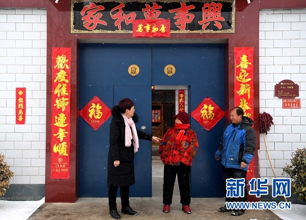 新春剛過,瑞雪降中原。一片銀裝素裹間,一個(gè)暗紅色的門樓上“向陽莊村”幾個(gè)金色大字格外醒目,門樓下葛樹芹正一邊掃雪一邊大聲地和村民們聊著天,歡聲笑語間滿滿的是幸福年味。