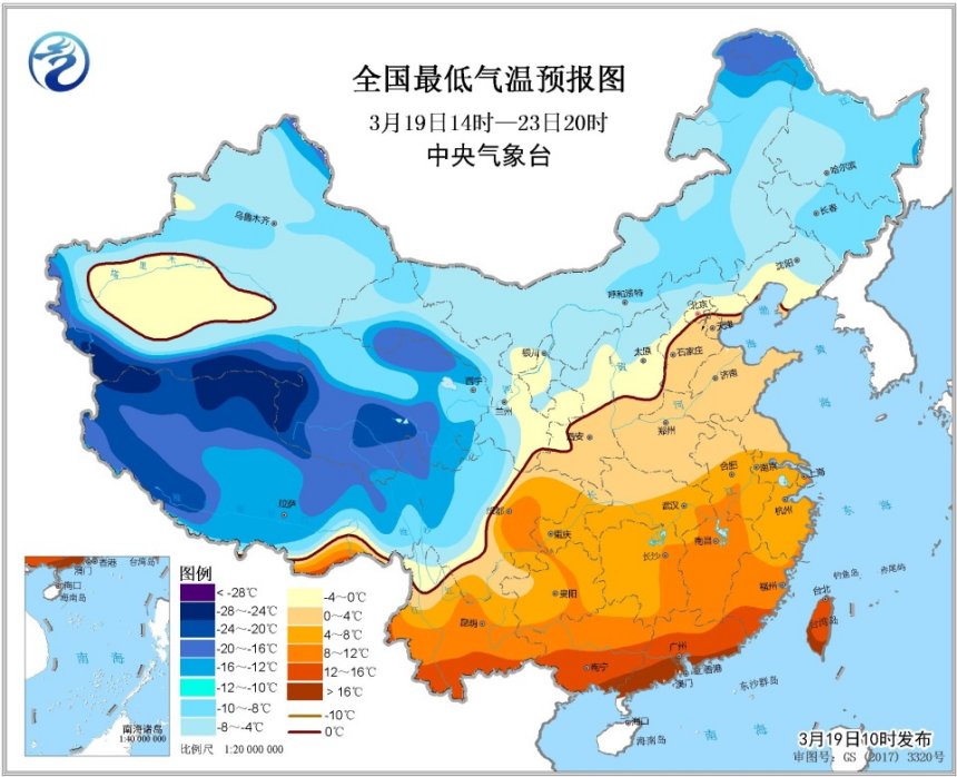 張濤:這次冷空氣過程體現(xiàn)出降溫幅度大和影響范圍廣的主要特點(diǎn)。由于前期氣溫較高,在這次天氣過程中,各地基礎(chǔ)氣溫不會太低,氣溫變化帶來的影響較大,但公眾感覺的寒冷程度不會太大。中央氣象臺已于3月19日10時(shí)發(fā)布寒潮藍(lán)色預(yù)警,提醒公眾注意氣溫變化。