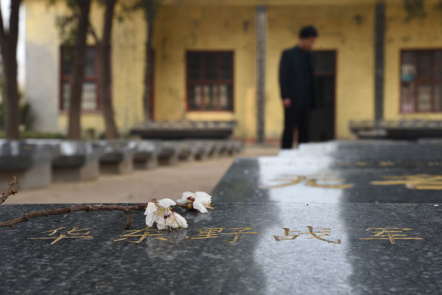 3月20日,張景憲在張和莊烈士陵園內瞻仰。