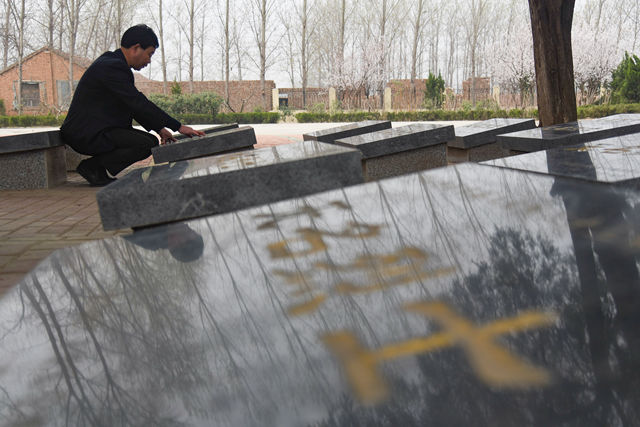 3月20日,張景憲在張和莊烈士陵園內。