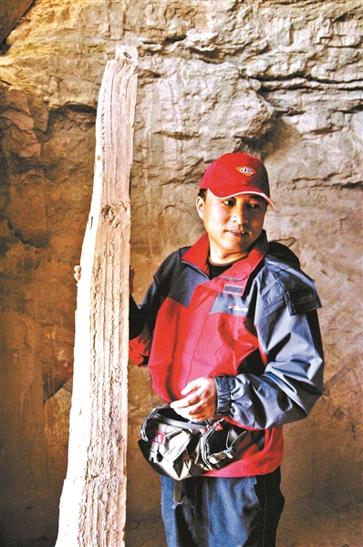 2005年王旭東在新疆樓蘭壁畫墓做現(xiàn)場搶救性支頂