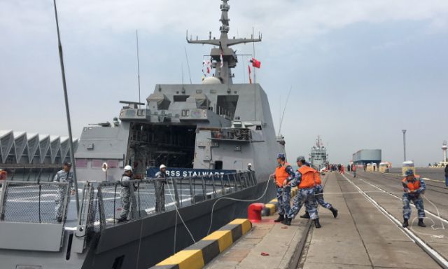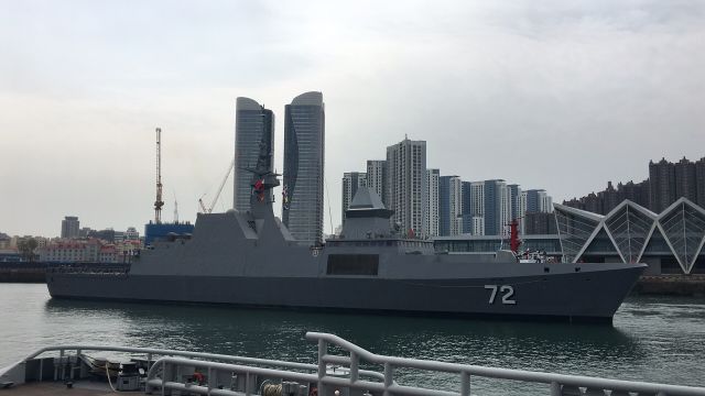 19日10時許,新加坡海軍“堅強”號護衛(wèi)艦緩緩駛?cè)肭鄭u大港碼頭。這是參加中國人民解放軍海軍成立70周年多國海軍活動到訪的第一艘外國海軍艦艇。新華社記者梅世雄 攝