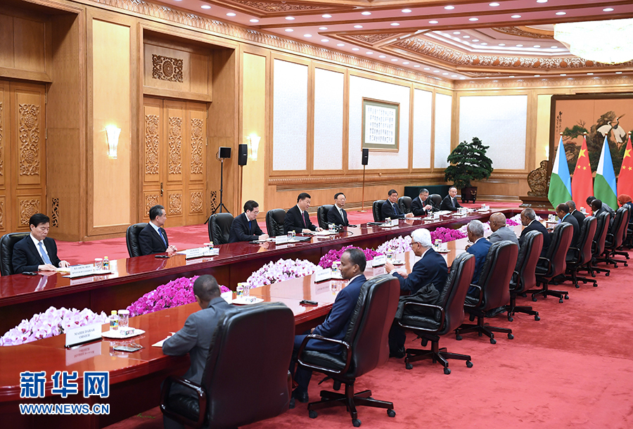 4月28日,國(guó)家主席習(xí)近平在北京人民大會(huì)堂會(huì)見吉布提總統(tǒng)蓋萊。 新華社記者 翟健嵐 攝