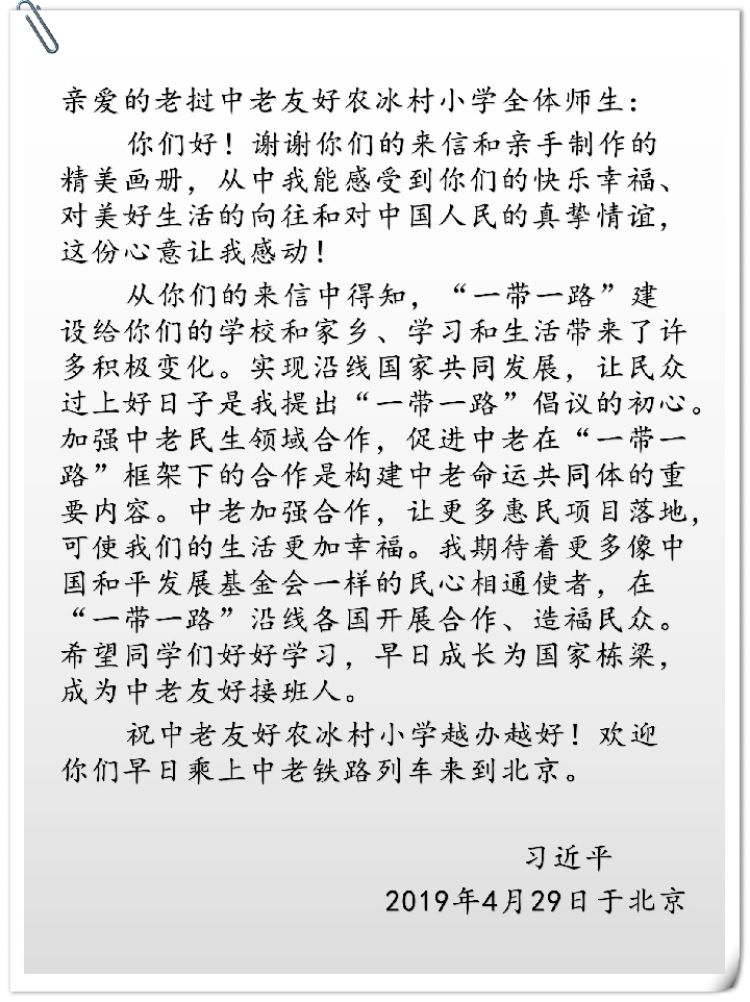 在來(lái)信的最后,中老友好農(nóng)冰村小學(xué)師生提及讓他們滿心期待的中老鐵路,希望以后能夠乘坐中老鐵路的列車去北京看看。