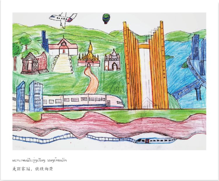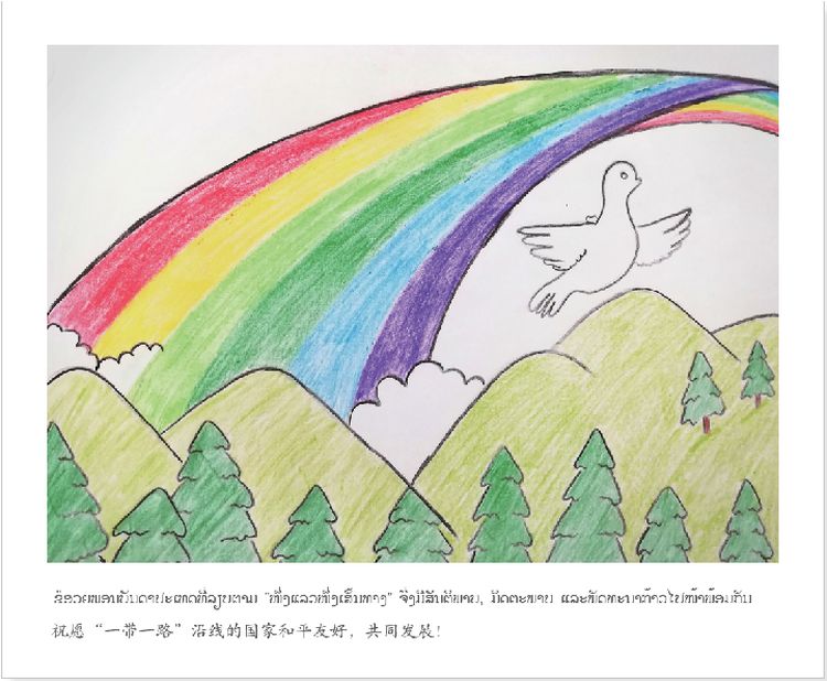 58幅天真爛漫的畫作,寓意中老建交58周年的深情厚誼。孩子們希望通過(guò)畫中的學(xué)校、家鄉(xiāng)、世界和夢(mèng)想,展示“一帶一路”為他們的生活帶來(lái)的變化,與習(xí)近平主席分享心中滿滿的喜悅和幸福。