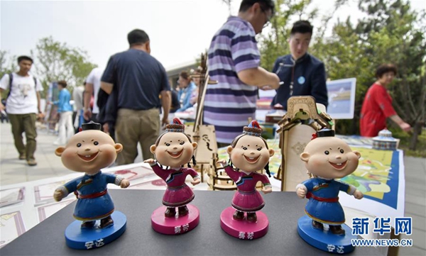 在北京世園會“內(nèi)蒙古日”文化展示活動上展出的呼倫貝爾少數(shù)民族文創(chuàng)產(chǎn)品(5月17日攝)。新華社記者 李欣 攝