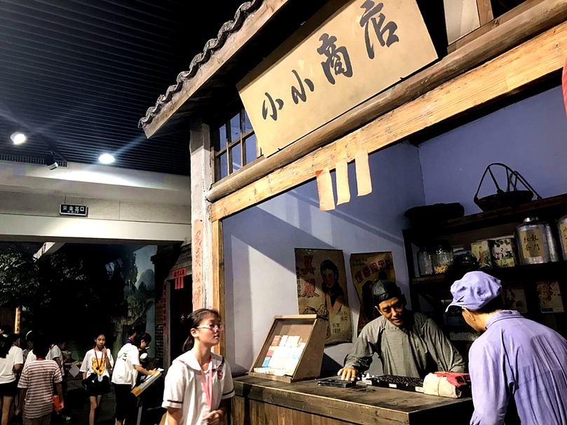 6月18日,一名學(xué)生在長汀縣博物館內(nèi)參觀“小小商店”展區(qū)。