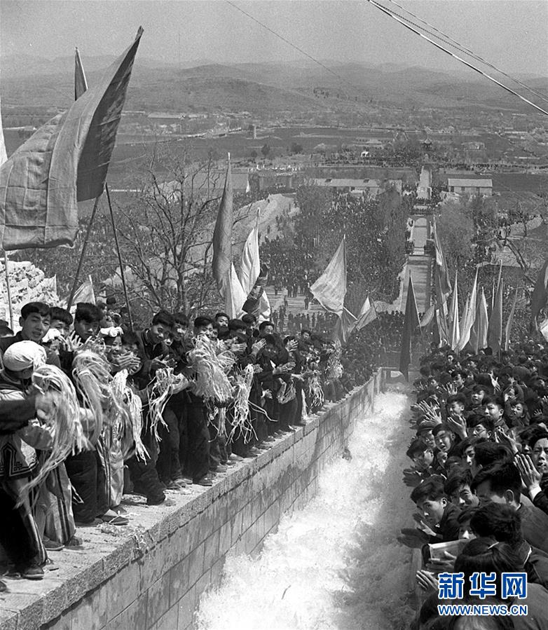 這是河南省林縣(今林州市)人民舉行盛大集會,慶祝紅旗渠竣工通水(資料照片)。1969年7月8日,河南省林縣紅旗渠工程全部建成。新華社發(fā)