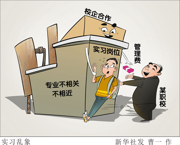 業(yè)內(nèi)人士認(rèn)為,一些職業(yè)學(xué)校將學(xué)生隨意送到一些與專業(yè)無(wú)關(guān)的企業(yè)實(shí)習(xí),甚至以此牟利,這背離了職業(yè)教育的初衷。教育、人社等主管部門(mén)應(yīng)加大對(duì)職校實(shí)習(xí)的監(jiān)管力度,斬?cái)嗦毿?shí)習(xí)背后的利益鏈條,防止“校企合作”成為“校企交易”。