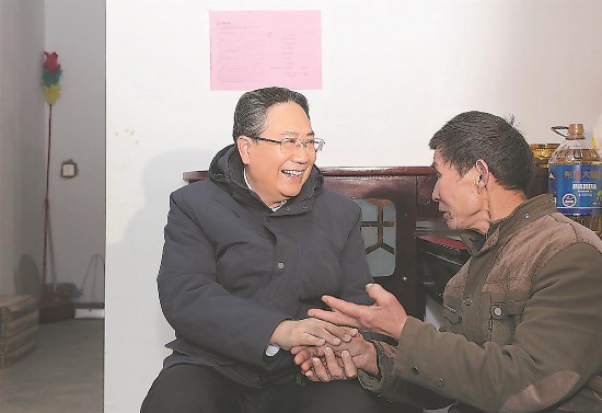2月2日,安徽省委書記李錦斌深入六安市金寨縣花石鄉(xiāng)大灣村村民陳澤申家中走訪慰問,與他親切交談。記者 徐國康 攝? 來源:安徽日報(bào)