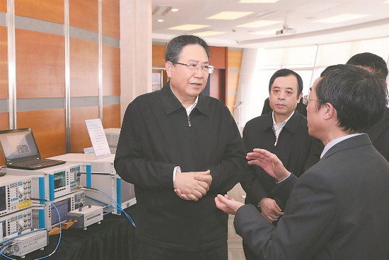 2月20日,安徽省委書記李錦斌來到中建材蚌埠玻璃工業(yè)設(shè)計(jì)研究院,在展示大廳參觀蚌埠市科技創(chuàng)新代表性企業(yè)產(chǎn)品。記者 徐國康 攝? 來源:安徽日報(bào)