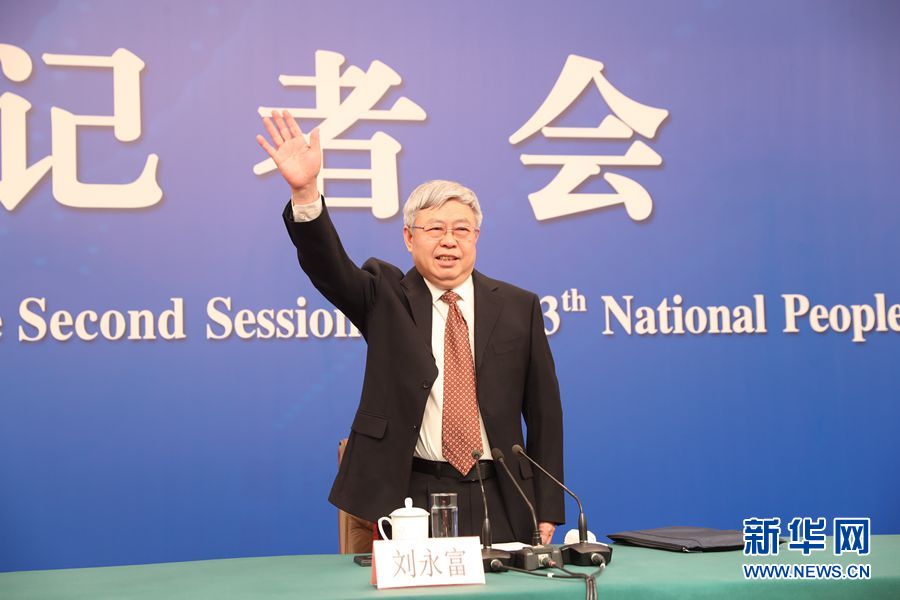 十三屆全國(guó)人大二次會(huì)議新聞中心于3月7日10時(shí)50分在梅地亞中心新聞發(fā)布廳舉行記者會(huì),邀請(qǐng)國(guó)務(wù)院扶貧開發(fā)領(lǐng)導(dǎo)小組辦公室主任劉永富就“攻堅(jiān)克難——堅(jiān)決打贏脫貧攻堅(jiān)戰(zhàn)”相關(guān)問(wèn)題回答中外記者提問(wèn)。圖為劉永富向記者們揮手示意。新華網(wǎng) 陳杰 攝