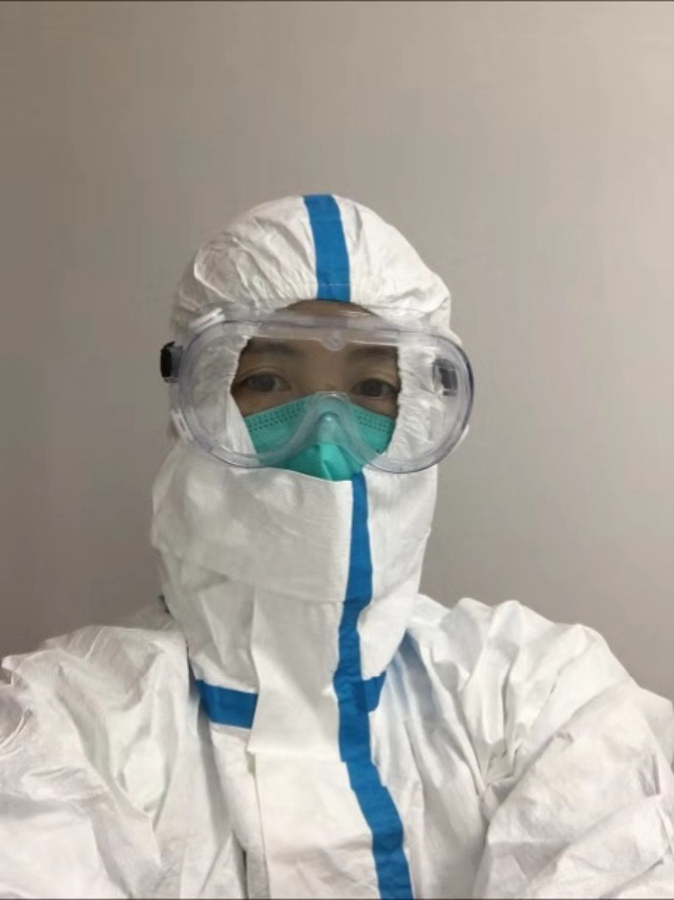 這是穿上防護(hù)服的王軼娜。(圖片由王軼娜同事中南大學(xué)湘雅二醫(yī)院趙麗萍提供)