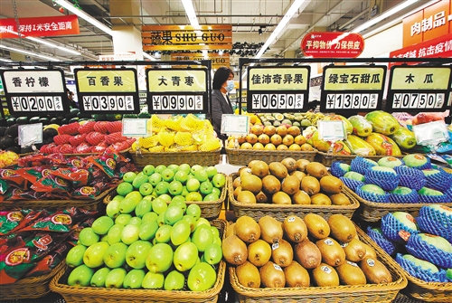 3月17日,居民在河北省邯鄲市永年區(qū)美食林超市選購(gòu)蔬菜水果。 胡高雷攝(中經(jīng)視覺)