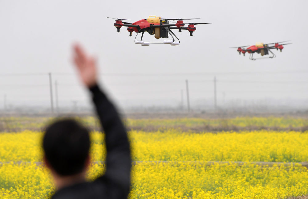 在江西省南昌市南昌縣蔣巷鎮(zhèn),無(wú)人機(jī)在對(duì)油菜田進(jìn)行植保作業(yè)。新華社記者 彭昭之 攝