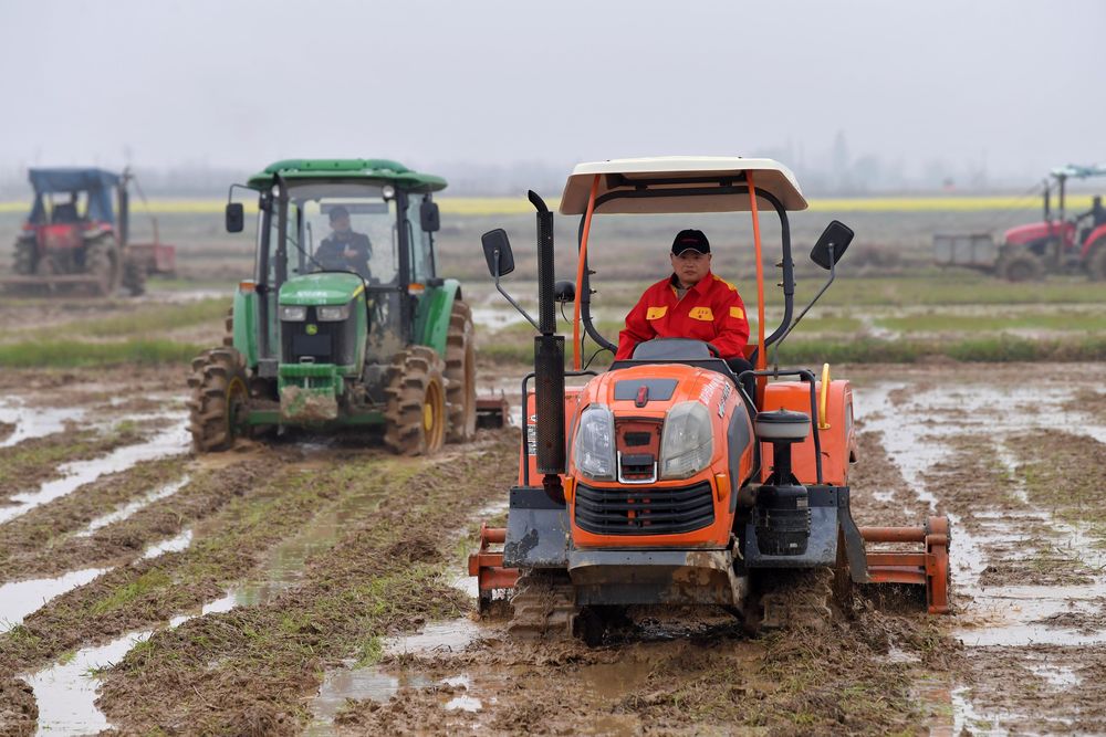 春雨下,幾臺(tái)旋耕機(jī)在江西省南昌縣蔣巷鎮(zhèn)大田現(xiàn)代農(nóng)業(yè)基地里來(lái)回作業(yè)。與其他農(nóng)機(jī)略顯不同的是,這些旋耕機(jī)的機(jī)身都裝有一個(gè)小小的智能終端和一個(gè)攝像頭。