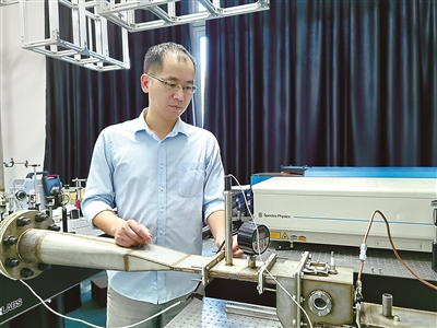 圖為尤延鋮教授在調(diào)試用于發(fā)動機(jī)燃燒室光學(xué)測量的激光測試儀器。(廈門大學(xué)供圖)