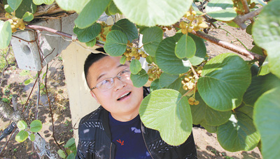 姚力在觀察獼猴桃花蕾長(zhǎng)勢(shì)。本報(bào)記者 原韜雄攝