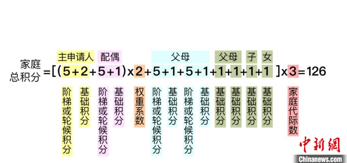 北京市擬增加以“無車家庭”為單位搖號和積分排序的指標配置方式。圖為案例1 三代同堂大家庭積分累加。北京市交通委供圖