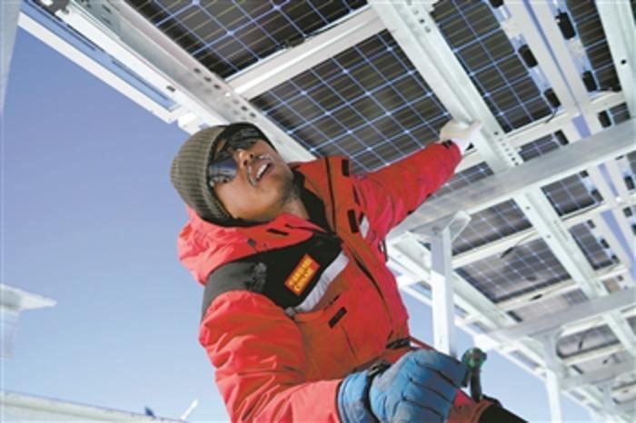 曾應(yīng)根為泰山站新能源系統(tǒng)安裝光伏太陽(yáng)能板。受訪者供圖