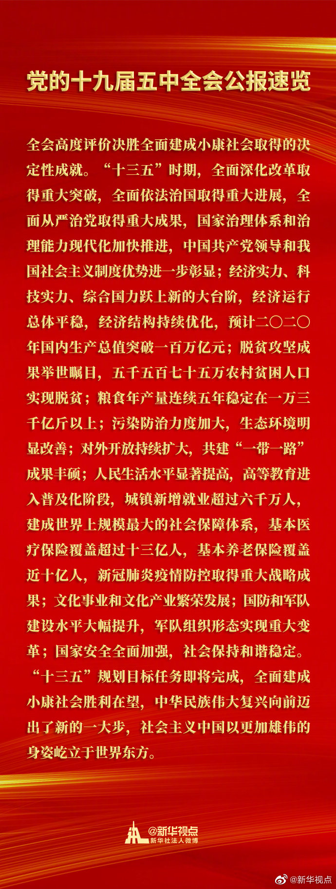 黨的十九屆五中全會公報速覽丨全會高度評價決勝全面建成小康社會取得的決定性成就-新華網(wǎng)