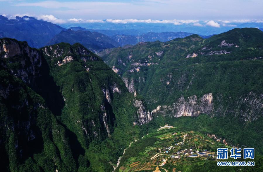 下莊村通往外界的公路(2020年7月3日攝,無人機(jī)照片)。