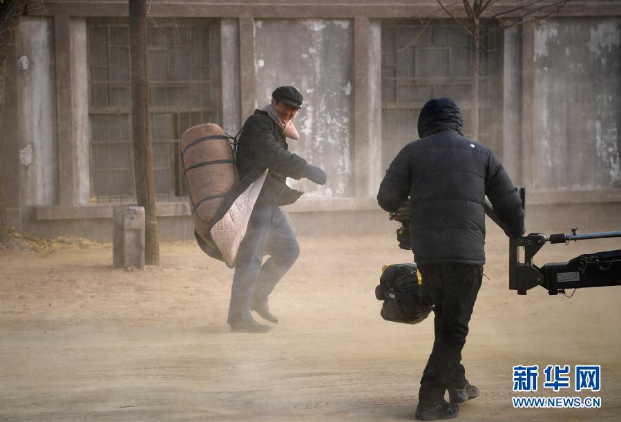 11月25日,焦裕祿扮演者郭曉東(左)在片場(chǎng)拍攝。新華社記者 王鵬 攝
