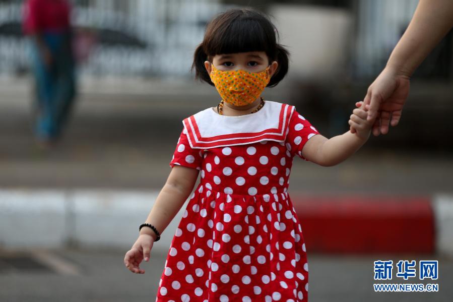 12月7日,在緬甸仰光,一名兒童戴著口罩外出。新華社發(fā)(吳昂 攝)