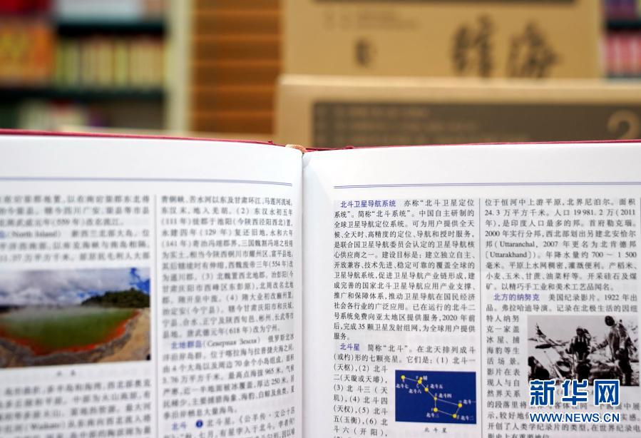 新版《辭海》中首次收錄的北斗衛(wèi)星導(dǎo)航系統(tǒng)等詞條(9月10日攝)。新華社記者 劉穎 攝