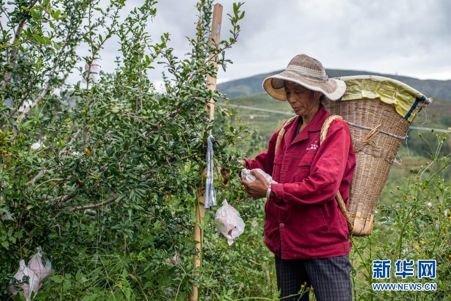 在云南省會澤縣娜姑鎮(zhèn)干海子村,干海子種植專業(yè)合作社的負責(zé)人莊錘兵正在地里管護石榴樹。
