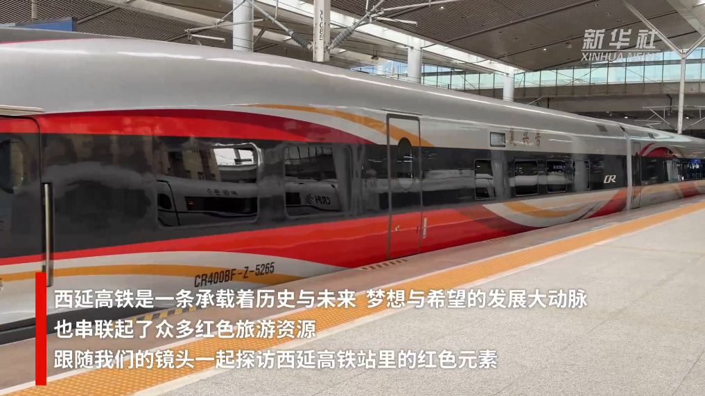 开通运营后,西安至延安的列车最快运行时间将缩短至1小时左右。西延高铁是一条承载着历史与未来、梦想与希望的发展大动脉,也串联起了众多红色旅游资源。跟随我们的镜头一起探访西延高铁站里的红色元素。