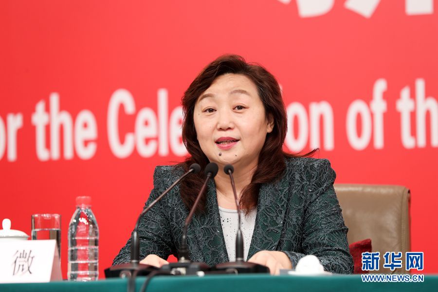 9月25日,慶祝中華人民共和國成立70周年活動新聞中心在北京梅地亞中心二層新聞發(fā)布廳舉辦第二場專題集體采訪活動。圖為聯(lián)歡活動指揮部聯(lián)歡演出部常務(wù)副部長龐微介紹相關(guān)情況。新華網(wǎng)記者 焦鵬 攝