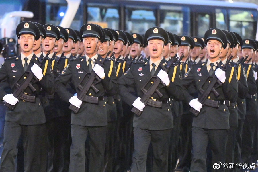 晨曦微露,裝點(diǎn)一新的東長(zhǎng)安街上,三軍列陣,鐵甲生輝,參加國(guó)慶70周年閱兵的全體受閱官兵集結(jié)完畢,雄姿英發(fā)、精神抖擻。由人民解放軍、武警部隊(duì)和民兵預(yù)備役部隊(duì)約15000名官兵、580臺(tái)(套)裝備組成的15個(gè)徒步方隊(duì)、32個(gè)裝備方隊(duì),沿東長(zhǎng)安街綿延向東約2公里;陸、海、空航空兵160余架戰(zhàn)機(jī),組成12個(gè)空中梯隊(duì),在北京周邊多個(gè)機(jī)場(chǎng)整裝待發(fā)。?