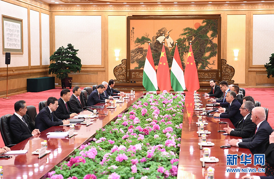 習(xí)近平指出,2017年,我和總理先生共同宣布兩國建立全面戰(zhàn)略伙伴關(guān)系,中匈關(guān)系進(jìn)入“換擋提速”的歷史新階段。今年是中匈建交70周年。中方期待同匈方一道努力,推動兩國全面戰(zhàn)略伙伴關(guān)系邁向新高度。雙方要保持高層交往熱度,做好政治引領(lǐng);提升互尊互信水平,深化戰(zhàn)略認(rèn)同;加大務(wù)實(shí)合作力度,實(shí)現(xiàn)互利共贏;拓寬人文交流廣度,促進(jìn)民心相通。下階段,我們要落實(shí)好匈塞鐵路等“一帶一路”框架內(nèi)合作,爭取更多實(shí)質(zhì)成果。中國-中東歐合作是中歐關(guān)系重要組成部分,希望匈方為此發(fā)揮更大作用。
