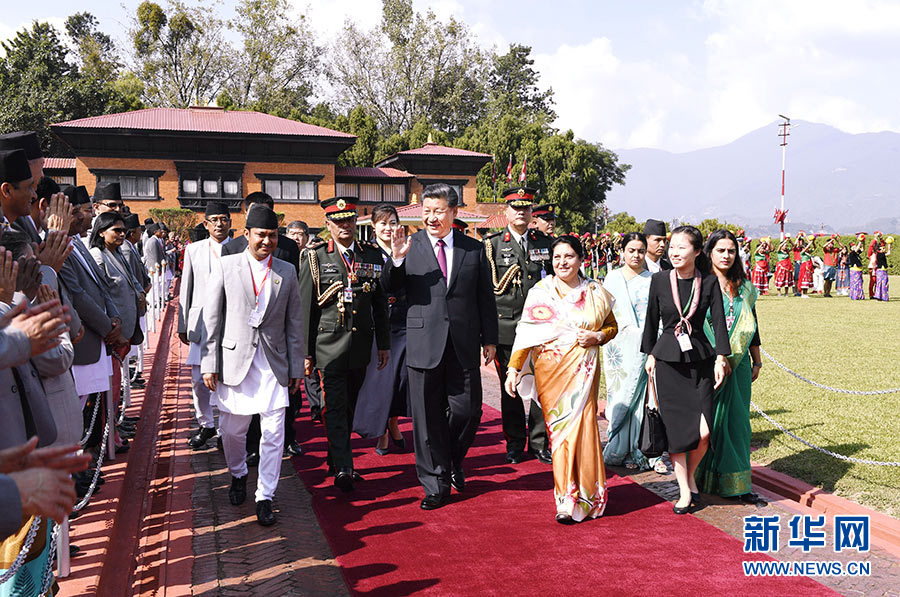 當(dāng)?shù)貢r(shí)間10月13日中午,國(guó)家主席習(xí)近平離開(kāi)加德滿都啟程回國(guó)。尼泊爾總統(tǒng)班達(dá)里在機(jī)場(chǎng)為習(xí)近平舉行隆重歡送儀式。尼泊爾副總統(tǒng)普恩、總理奧利、聯(lián)邦議會(huì)聯(lián)邦院主席蒂米爾西納、所有內(nèi)閣成員、軍方高級(jí)將領(lǐng)參加。 新華社記者 高潔 攝