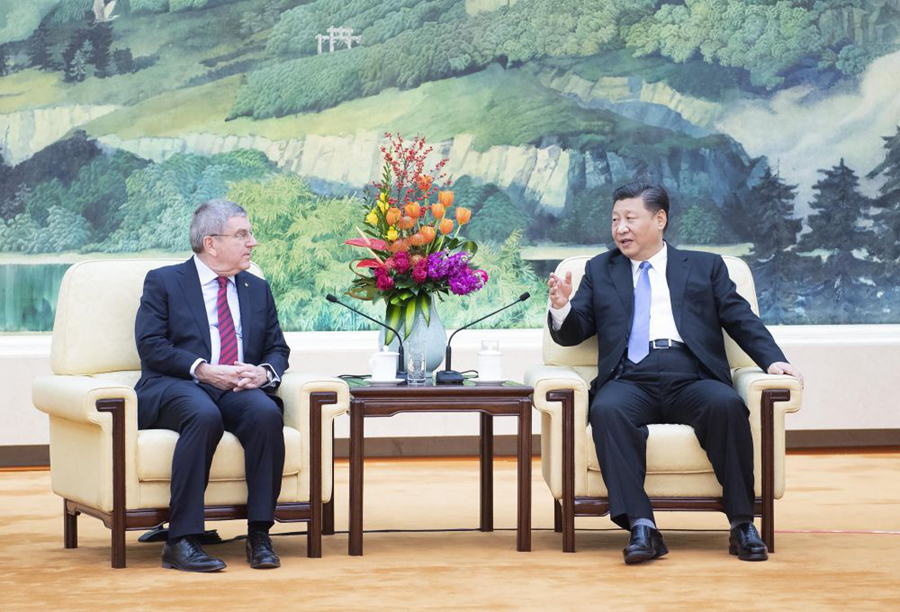 2019年1月,北京,習(xí)近平會(huì)見國際奧委會(huì)主席巴赫。(新華社記者李濤 攝)