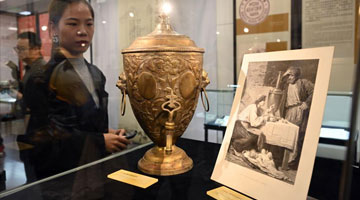 10月18日,参观者在瓷博会现场举办的第六届世界华人收藏家大会瓷器精品展上拍摄展品。