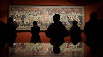 3月24日,府学胡同小学学生在书画摄影展开幕式上表演歌舞。