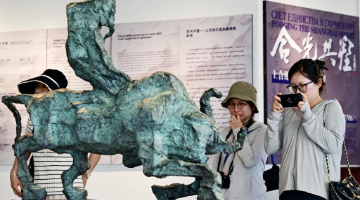 7月2日,观众参观巡星雕塑。