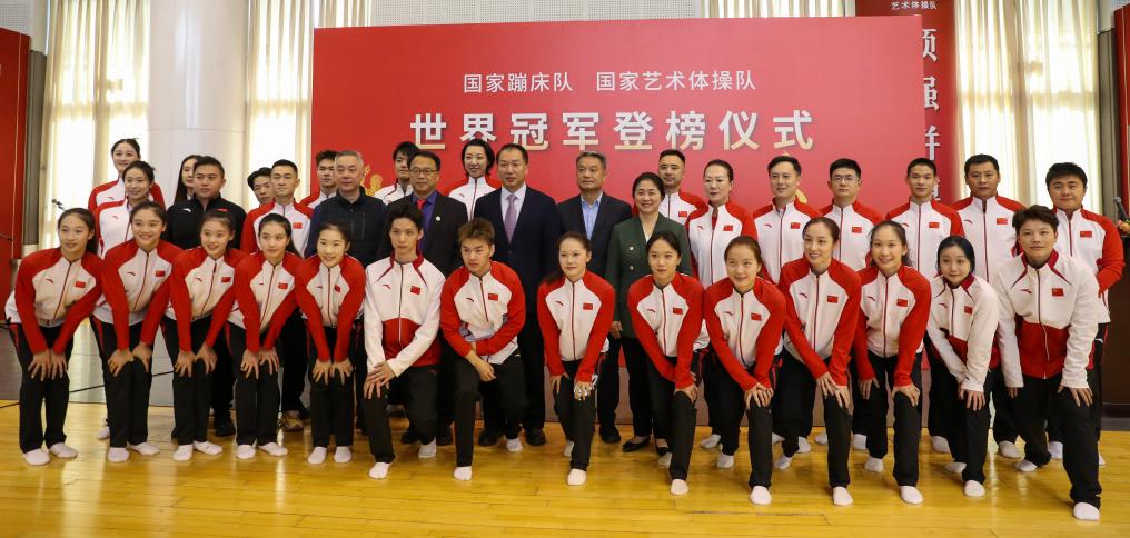中国蹦床队、艺术体操队世界冠军登榜仪式举行