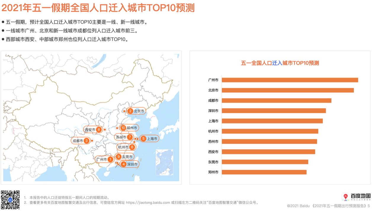 ????? 預(yù)計全國人口遷入城市TOP10主要是一線、新一線城市。