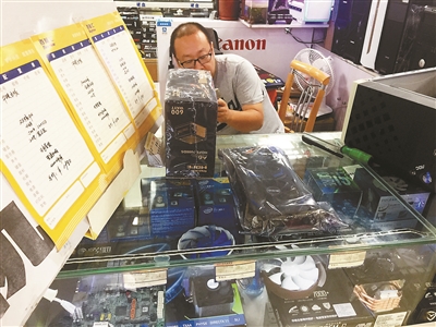 朝外百腦匯一家商戶在展示新到貨的顯卡 圖片來源:北京青年報(bào)