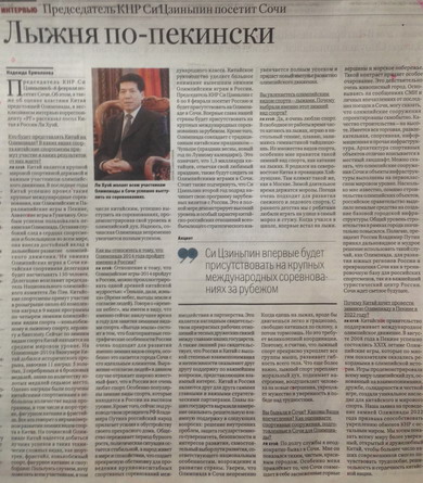 2014年1月28日,中國(guó)駐俄羅斯大使李輝就習(xí)近平主席應(yīng)俄羅斯總統(tǒng)普京邀請(qǐng)出席索契冬奧會(huì)接受俄政府報(bào)紙《俄羅斯報(bào)》專(zhuān)訪。