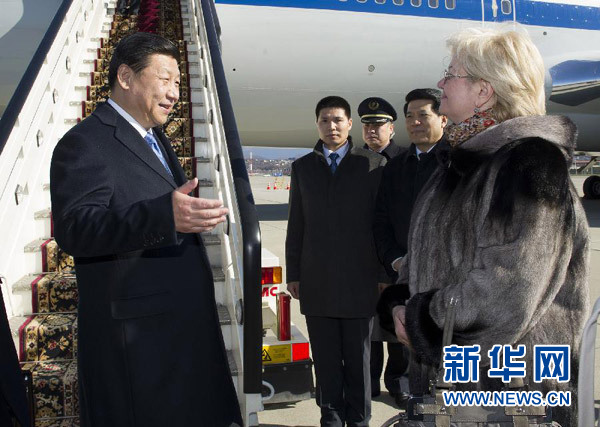 ????當(dāng)?shù)貢r間13時50分許,習(xí)近平乘坐的專機抵達索契阿德列爾機場。習(xí)近平受到索契市負(fù)責(zé)人的歡迎。