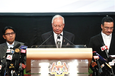 馬來西亞總理納吉布在吉隆坡召開緊急發(fā)布會(huì)。新華社記者 王申 攝